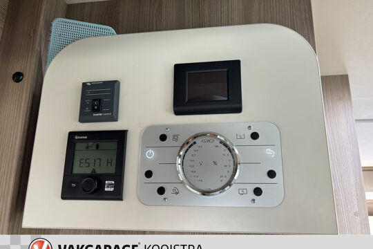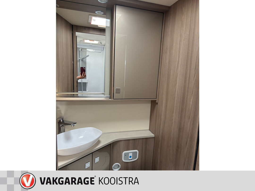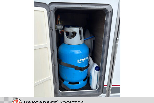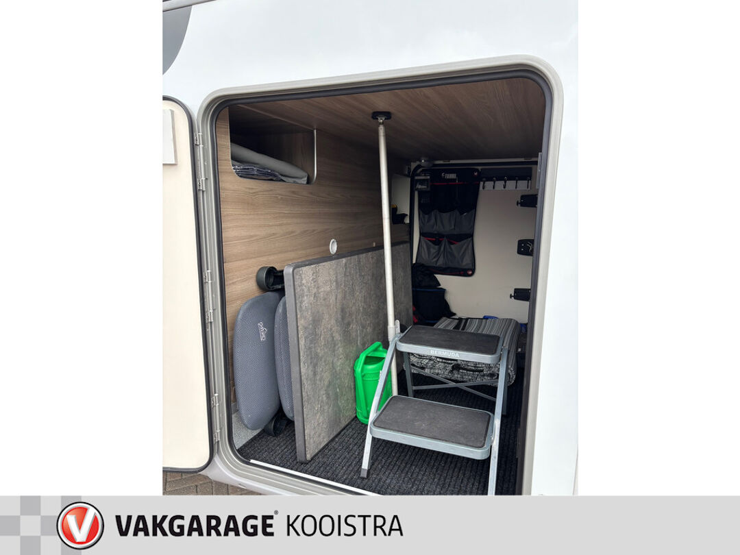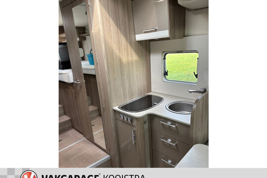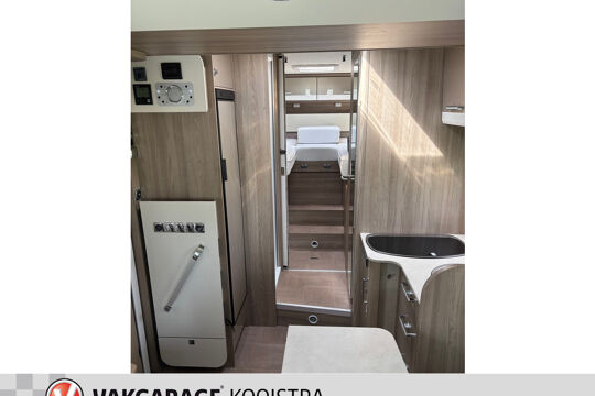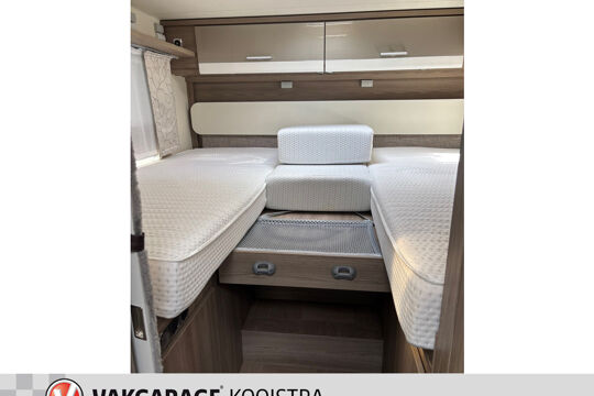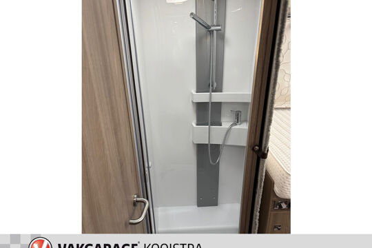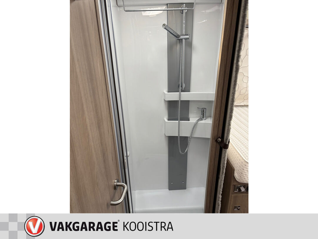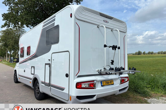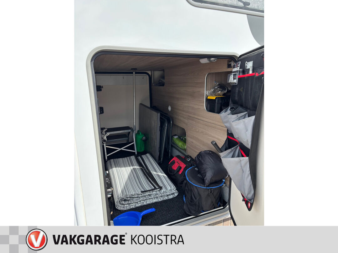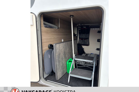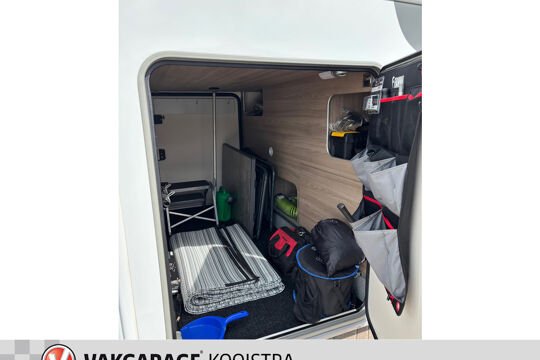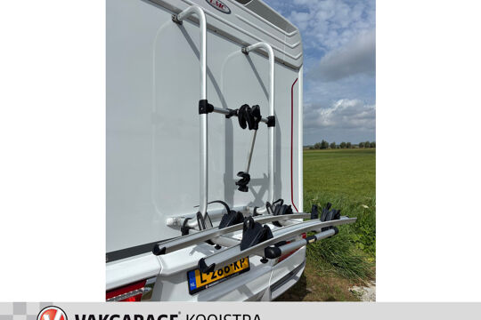 * interieur: Douche, toilet, keuken, 2 persoons lengte bed + 2 persoons hef bed, ruime zithoek, ruime garage, fietsendrager (2 fietsen)