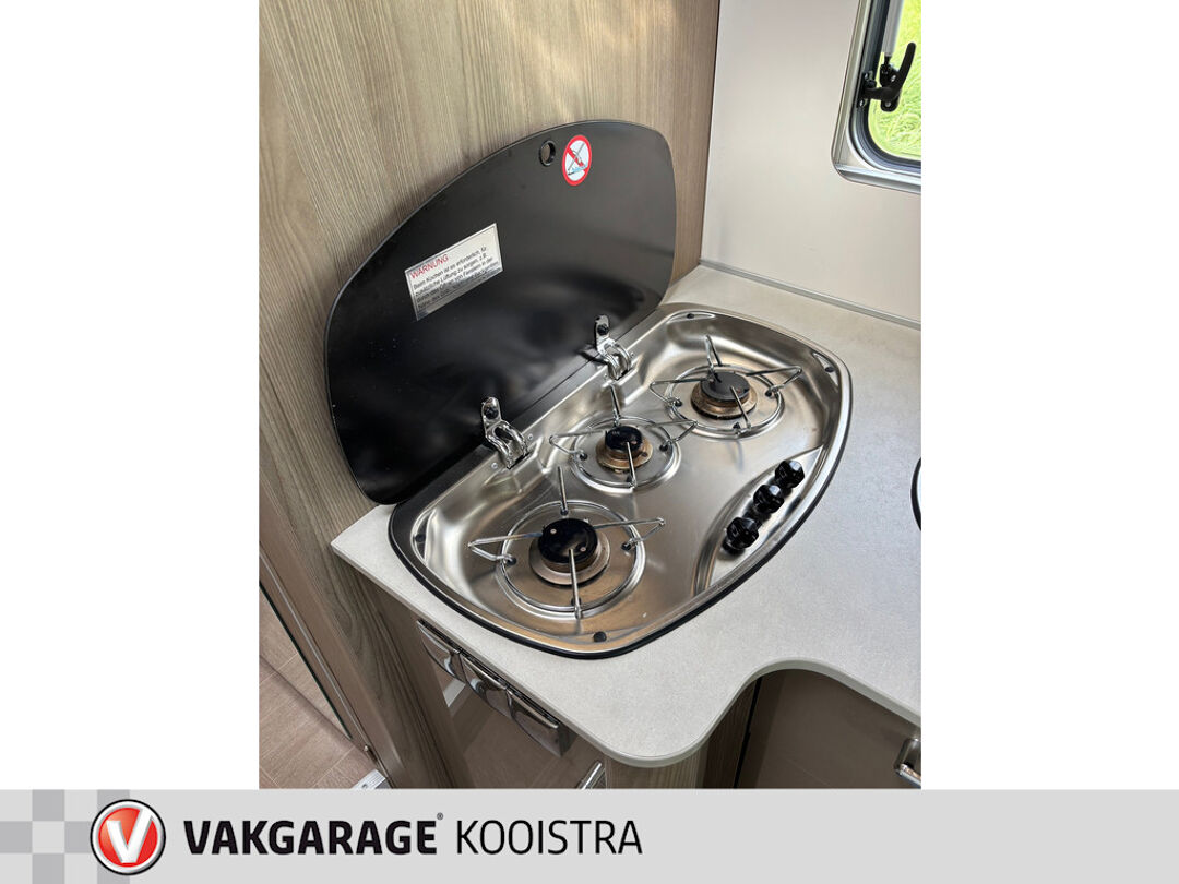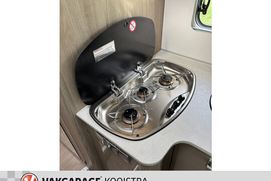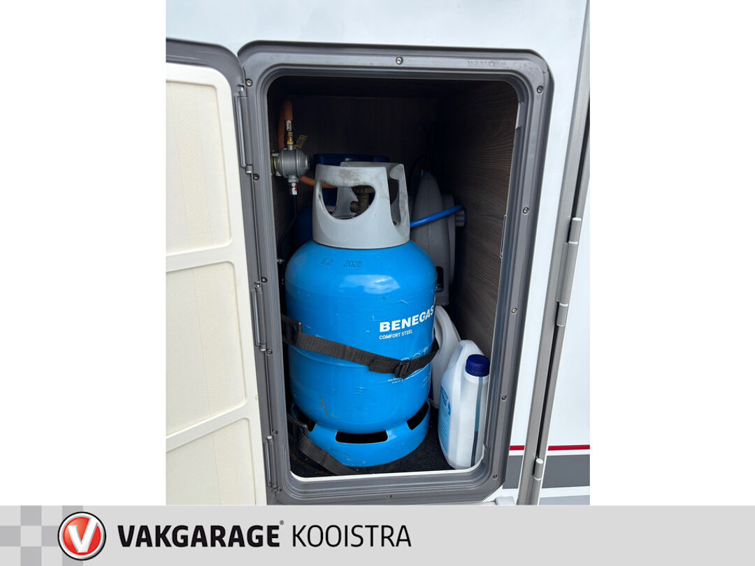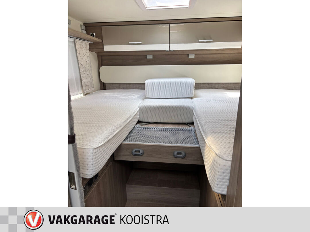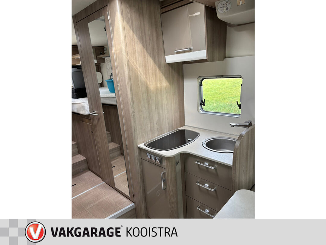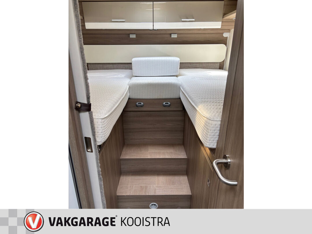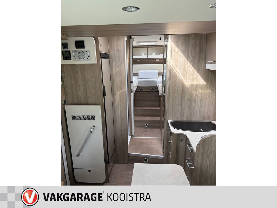 * interieur: Douche, toilet, keuken, 2 persoons lengte bed + 2 persoons hef bed, ruime zithoek, ruime garage, fietsendrager (2 fietsen)