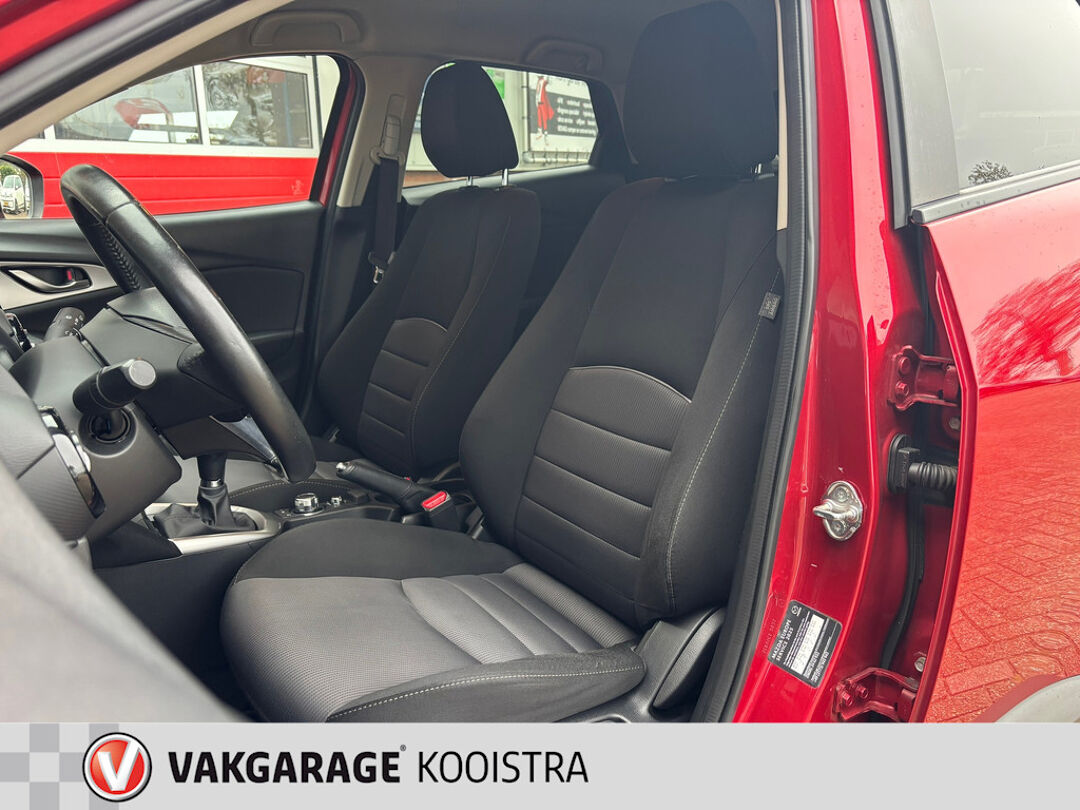 Met een auto als deze Mazda CX-3 komt u absoluut goed voor de dag. De aandrijving van deze Mazda wordt verzorgd door een viercilinder motor en een handgeschakelde zesversnellingsbak. 's Winters komen de verwarmbare voorstoelen heerlijk van pas. U wordt in deze auto ook getrakteerd op 16 inch lichtmetalen velgen, dakspoiler, extra getint glas en in delen neerklapbare achterbank.