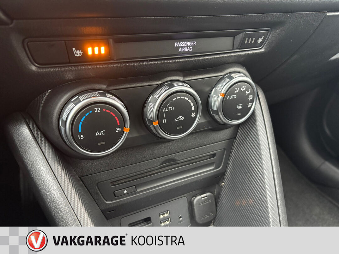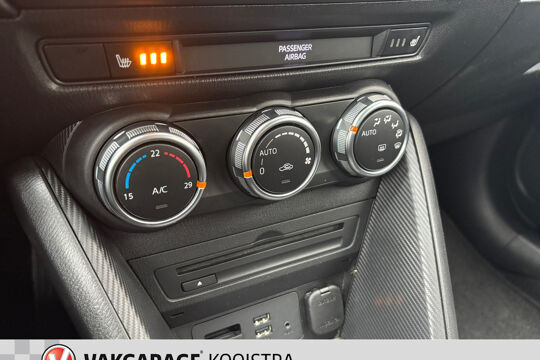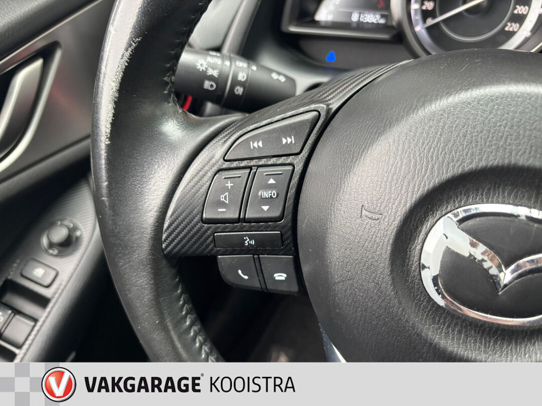 Het infotainmentsysteem bedient u met uw vingers of met uw stem, met dank aan de geïntegreerde stembediening. Het navigatiesysteem zorgt ervoor dat u snel en ontspannen op uw bestemming aankomt. Ook is de auto voorzien van automatische airconditioning. De DAB-ontvanger zorgt voor een ruime keuze uit digitale radiozenders en een kristalheldere geluidsweergave. De parkeersensoren registreren alles. Ook dat ene paaltje dat net buiten uw gezichtsveld valt. Ook is de Mazda uitgerust met: regensensor, cruise control, lederen stuur, centrale deurvergrendeling met afstandsbediening en boordcomputer.