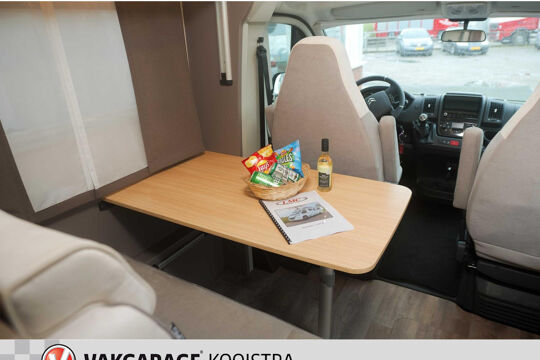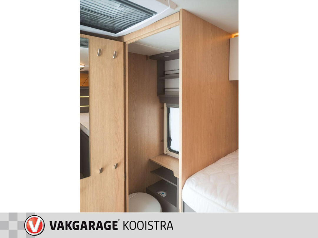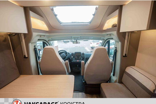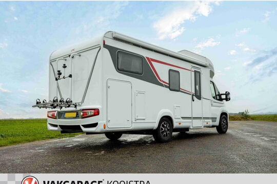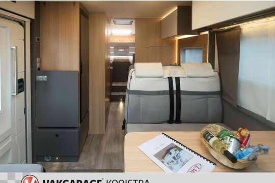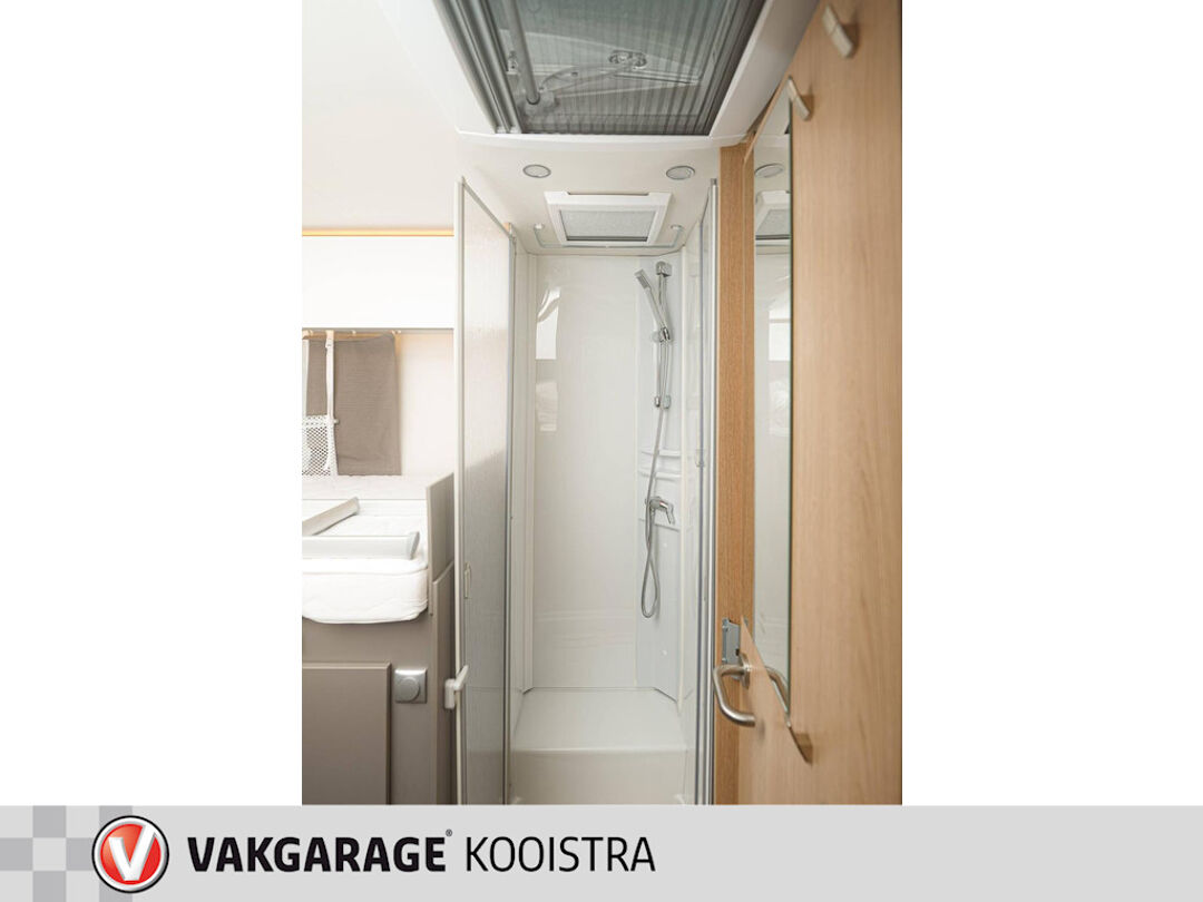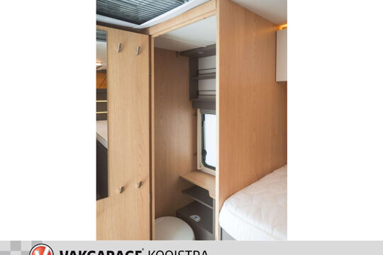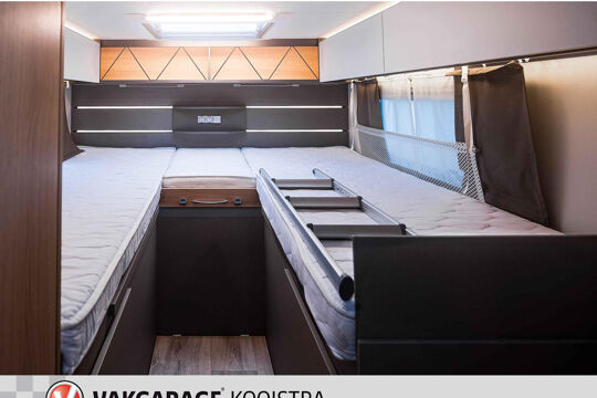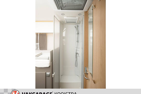 * interieur: Douche, toilet, keuken, 2 persoons lengte bed, 2 persoons hef bed, ruime zithoek, ruime garage, fietsendrager (2 fietsen)