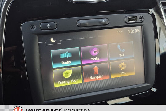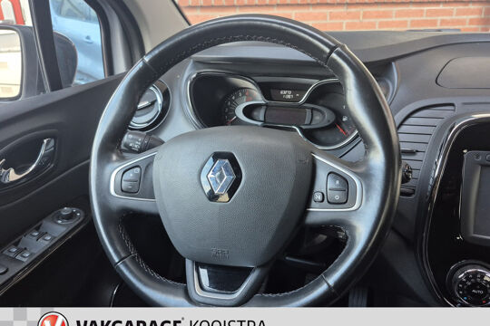 De achteruitrijcamera brengt precies in zicht wat zich achter u bevindt en toont een glashelder beeld op hoge resolutie. Een geluidssignaal waarschuwt hoeveel ruimte u nog heeft. Een optie die de veiligheid verhoogt, is de bediening vanaf het stuur van het audio-installatiesysteem (met DAB-radio!) en het navigatiesysteem. Als u wilt kunt u beiden zelfs met uw stem bedienen. Aan boord van deze Renault Captur is een achteropkomend verkeer waarschuwing voor extra veiligheid. Met de automatische airconditioning selecteert u de gewenste temperatuur. Het systeem doet de rest. De auto neemt u werk uit handen doordat hij zelf veel in de gaten houdt. Een regensensor en een automatisch inschakelbare verlichting nemen waar wanneer de ruitenwissers en het licht aan moeten. De uitrusting van deze Renault is met cruise control, keyless entry, automatisch dimmende binnenspiegel, lederen stuur, boordcomputer en lederen versnellingspook behoorlijk compleet.