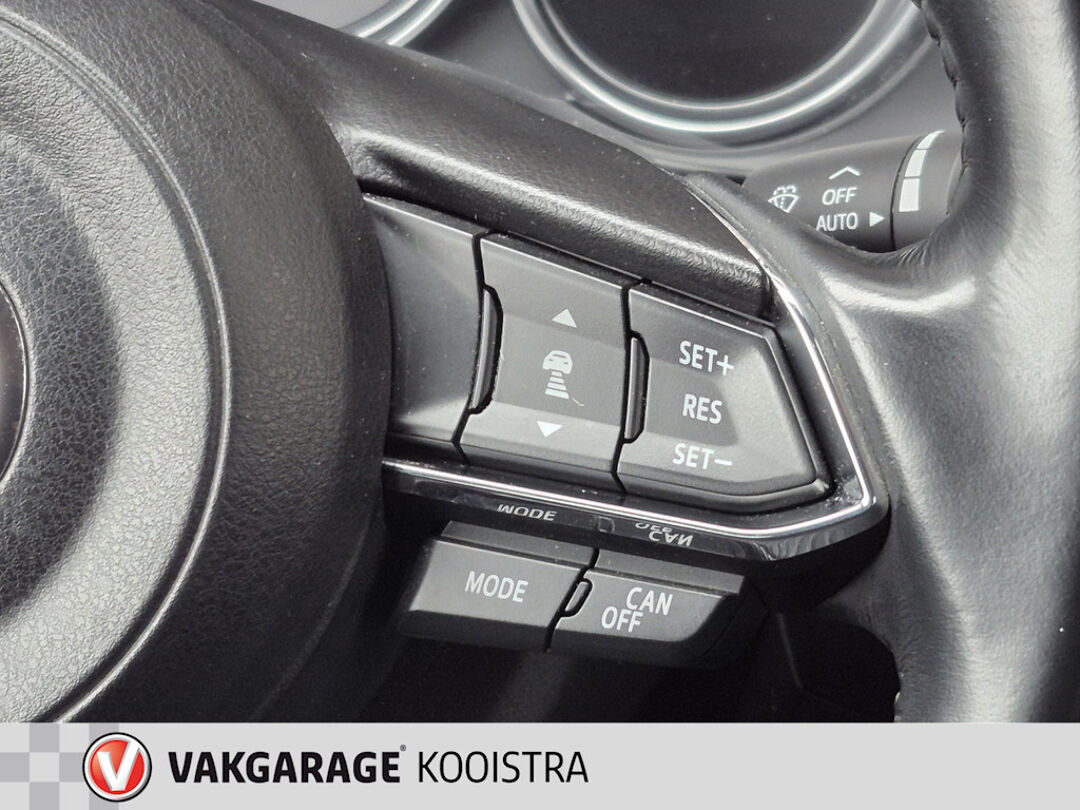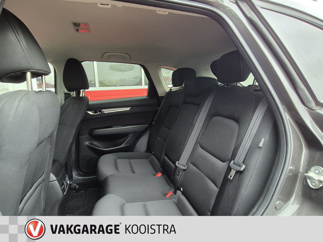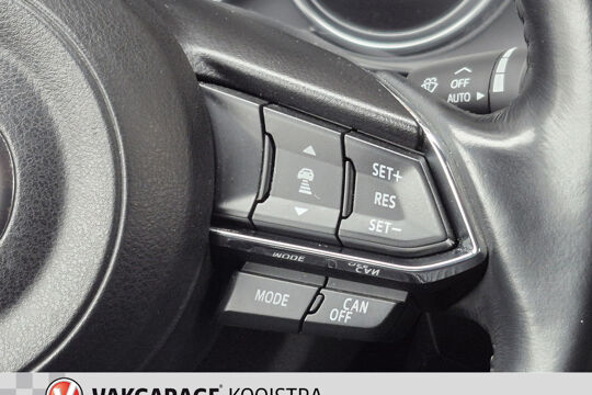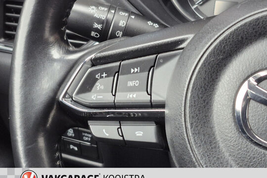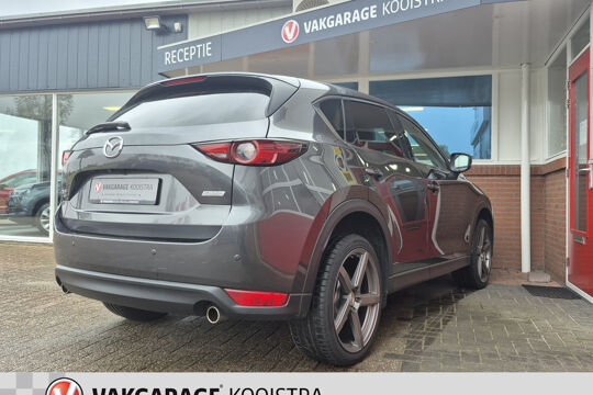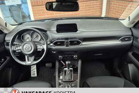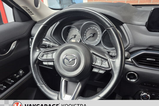 Alle technologie in de Mazda CX-5 is er op gericht om uw rit veilig en gemakkelijk te laten verlopen. De aandrijving van deze Mazda wordt verzorgd door een viercilinder motor en een automatische transmissie. Hoogstaande comfortfuncties zoals stoelverwarming, verwarmbare achterbank en een verwarmbaar stuur maken deze auto tot een uitzonderlijke keuze. De bagageruimte is toegankelijk via een comfortverhogende elektrische achterklep. Verder is de Mazda uitgerust met: LED koplampen, dakspoiler, extra getint glas, in delen neerklapbare achterbank, LED-achterlichten en verstelbare lendensteunen.