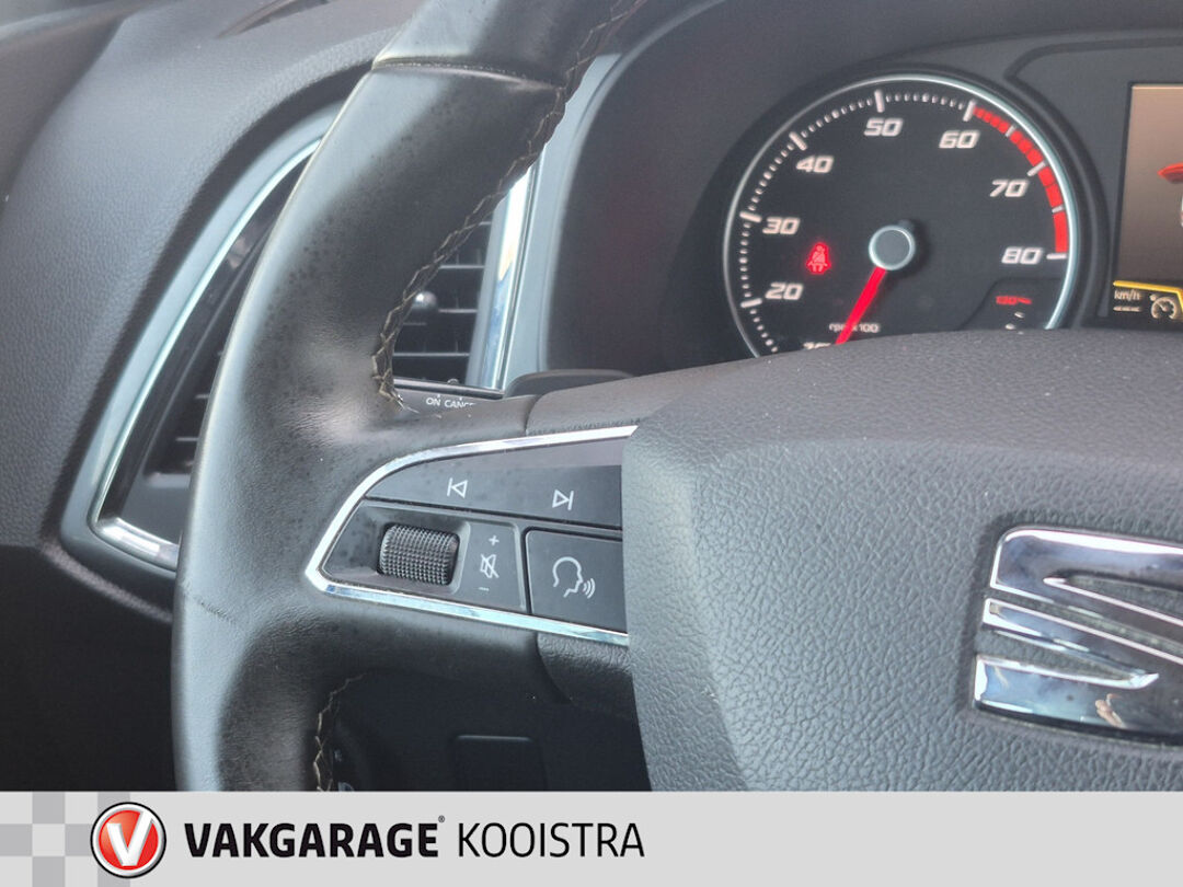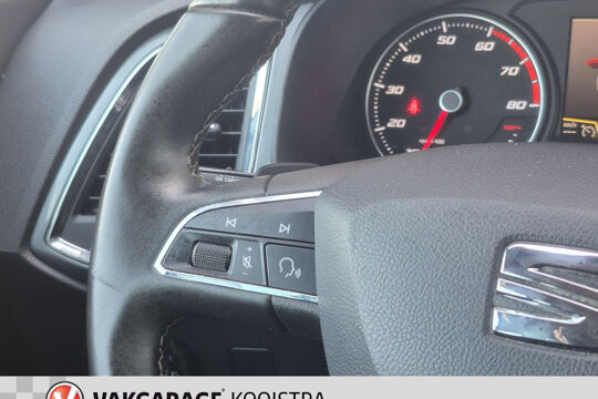 Altijd achter zicht, nooit meer nekkramp! De achteruitrijcamera maakt het supermakkelijk. Kilometerstand? Oliepeil? Accuspanning? Allemaal te zien via de app. Overal. Altijd. Dankzij Connected Services. Het navigatiesysteem en het audio-installatiesysteem (met DAB-ontvangst!) bedient u met knoppen op het stuur. Met de automatische airconditioning selecteert u de gewenste temperatuur. Het systeem doet de rest. De elektronische systemen in deze Seat helpen u actief om comfortabeler te rijden. Een automatisch inschakelbare verlichting en een regensensor houden de omstandigheden onderweg in de gaten. Deze Seat is voorzien van sportstuur met schakelpaddels, cruise control, buitentemperatuurmeter, automatisch dimmende binnenspiegel, centrale deurvergrendeling met afstandsbediening en bagage afdekhoes.